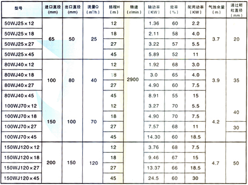 概述 WJ型漿泵是采用日本荏原制作所無堵塞泵的原理,開發(fā)的新一代漿泵系列產(chǎn)品,該泵采用國外先進(jìn)的雙流道式葉輪、各種纖維,顆粒通過性能好,具有無堵塞、輸漿濃度范圍廣等特點(diǎn)??赏ㄟ^棉漿、木漿、各種顆粒、污水垃圾等。與ZBJ型紙漿泵相比。使用壽命長,節(jié)能效果顯著,效率可提高10-15%,如過流部分采用ZG1C18Ni9Ti、ZG1Cr18Ni12Mo2Ti材質(zhì),可適用于輸送200℃以下,含有腐蝕性液體的管道,代替?zhèn)鹘y(tǒng)的襯膠泵。主要用于輸送制漿、造紙、化纖等各種漿料及三廢處理等部門。濃度可達(dá)2-5%,采用特殊葉輪濃度可達(dá)8%左右。